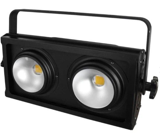 Featuring COB technology this blinder is loaded with two 100W individually addressable warm / cool white LEDs which are each housed in 60° reflectors, producing an output similar to a 650w DWE lamp. It can replicate colour temperatures from 2700k to 6500k