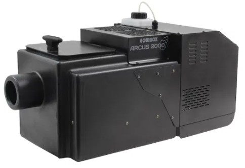 The Equinox Arcus 2000 Low Fogger produces thick, low-lying fog, with no dry ice required, using ultrasonic mist technology. With a powerful 1,500 W heater and 7 L water tank, it generates approximately 2,800 cu ft/min of dense floor-level fog.